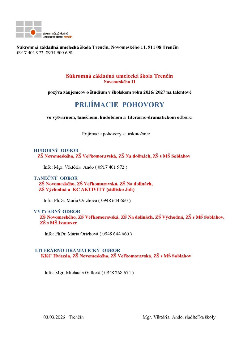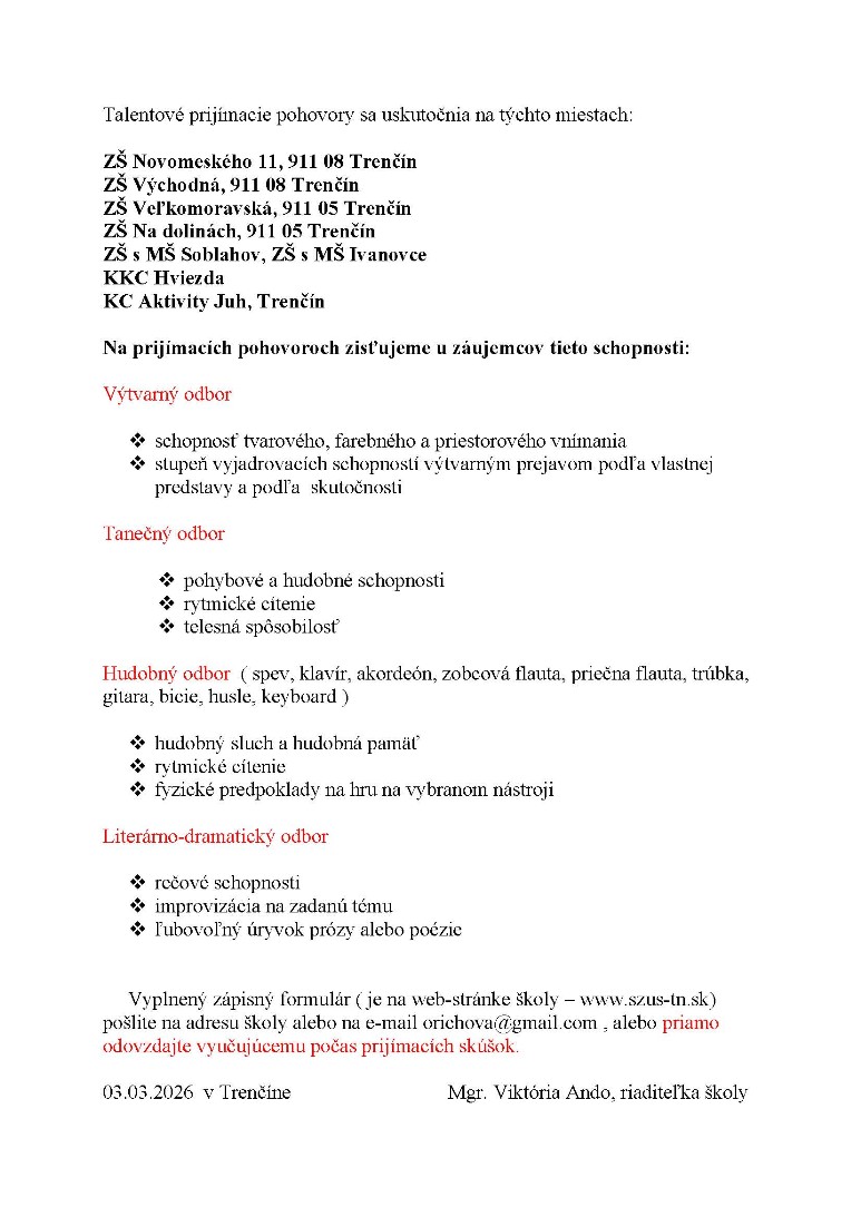 , alebo priamo odovzdajte vyučujúcemu počas prijímacích skúšok.